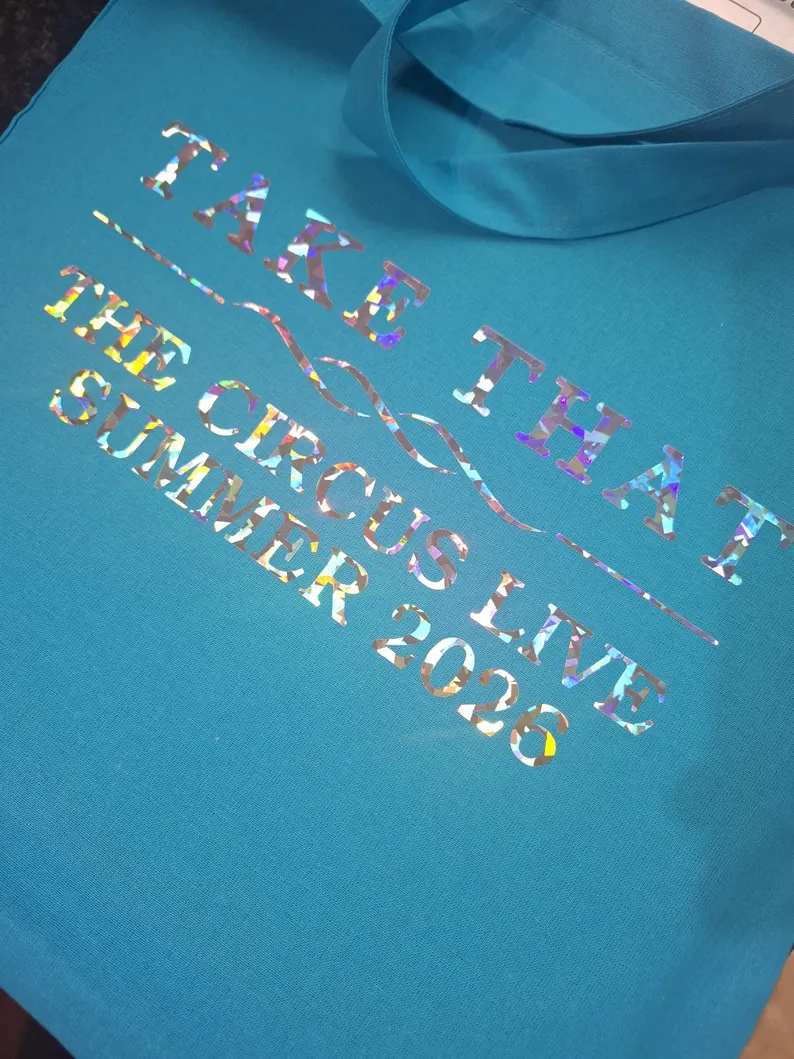 Take That inspired tote bag. Printed with metallic mirror vinyl for that ultimate shine ✨️